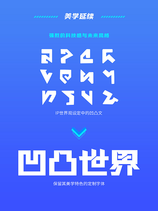 整体而言,这款字体被赋予了强烈的科技感与未来风格,高度契合《凹凸世界》的世界观与故事设定。