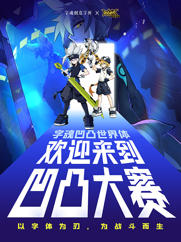 从字型上来说,⌈字魂凹凸世界体⌋方正偏扁,犹如动漫中参赛者伫立战场的沉稳姿态,在沉着中暗藏爆发力。