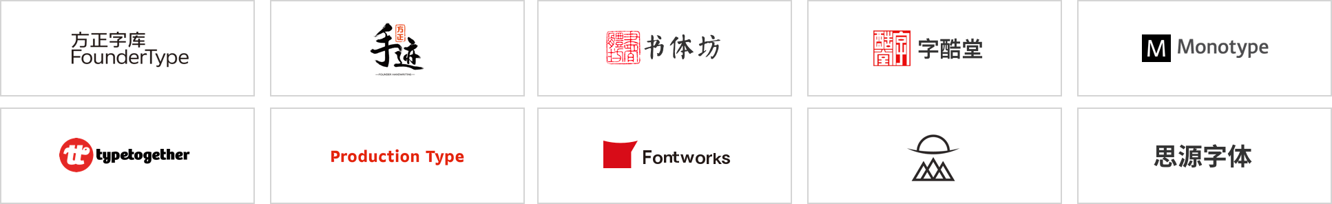 字加精选方正,字酷堂,蒙纳等数十个常见字体品牌,一万多款精美字体!