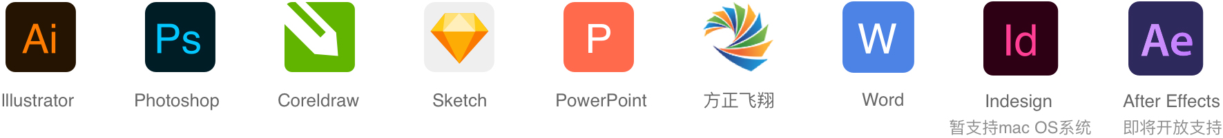 字加可支持市场主流办公和设计软件,只需一步即可在众多软件中使用